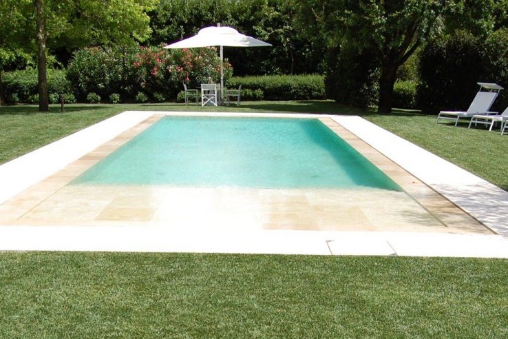 Realizziamo piscine con bordi a sfioro di ogni tipo: dalle canalette con griglia in PVS, in gres e in elementi lapidei appositamente intagliati, agli sfiori sotto battente (tipo peschiera), ai bordi tipo spiaggia, che aumentano la percezione dello specchio d’acqua.