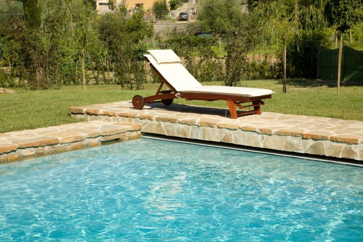 Struttura in cemento armato Dimensioni 6,00 x 12,00 Rivestimento pvc 2000 colore grey Skimmer Copertura automatica Solarium in pietra naturale Piscina di pertinenza di una…